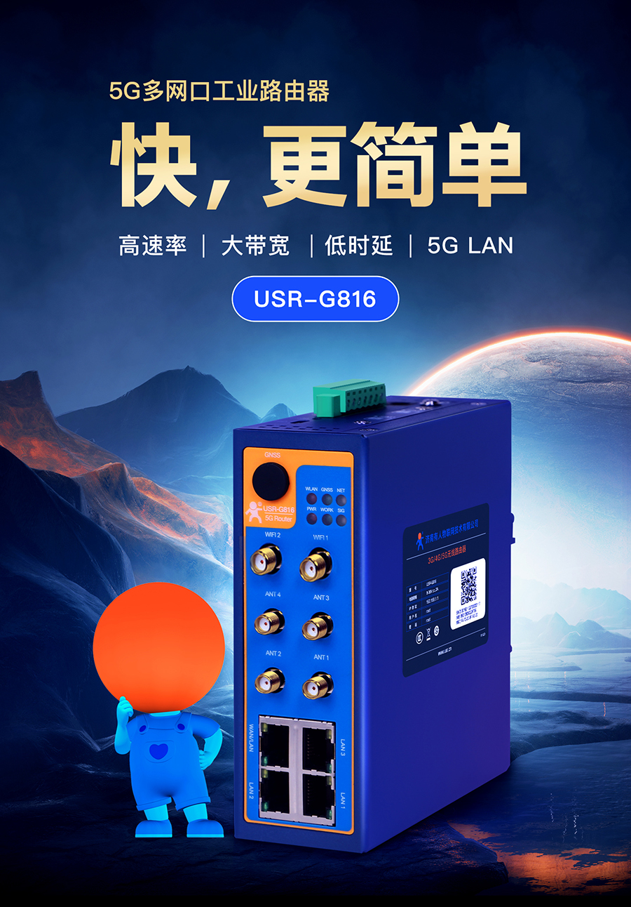 智慧交通场景对路由器的时延、覆盖范围与定位精度提出极高要求。USR-G816在苏州智能网联示范区中,通过以下功能支持车路协同: