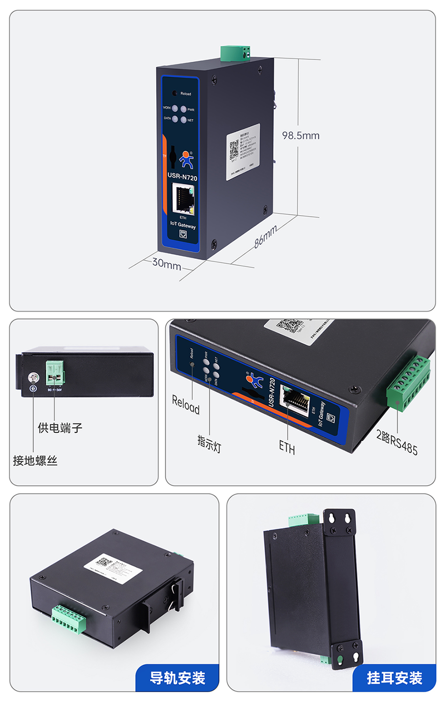 挂耳、导轨两种方式均支持(默认导轨)