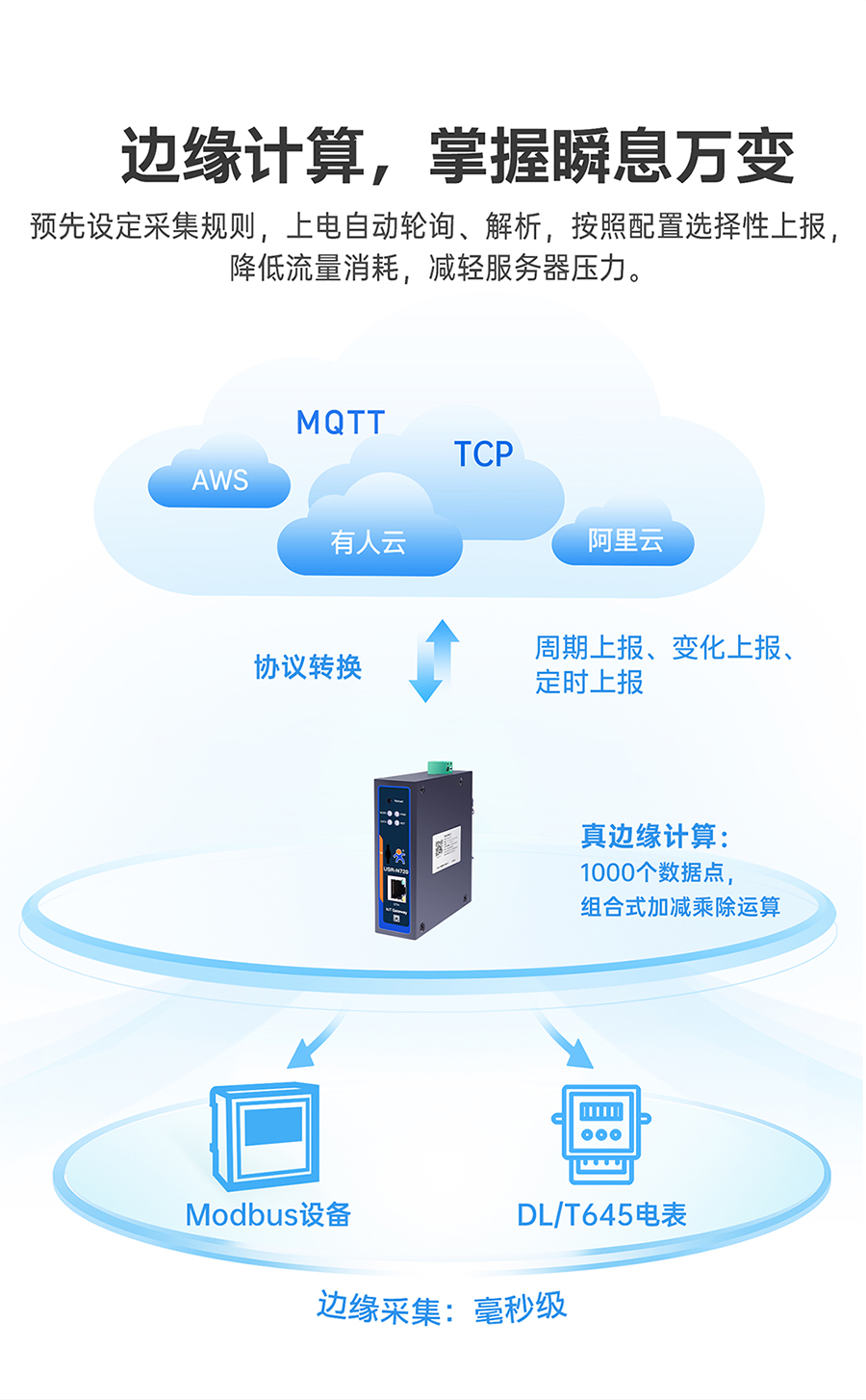 轮询采集,数据计算,分组上报,300-1000点位,自定义JSON上报模板