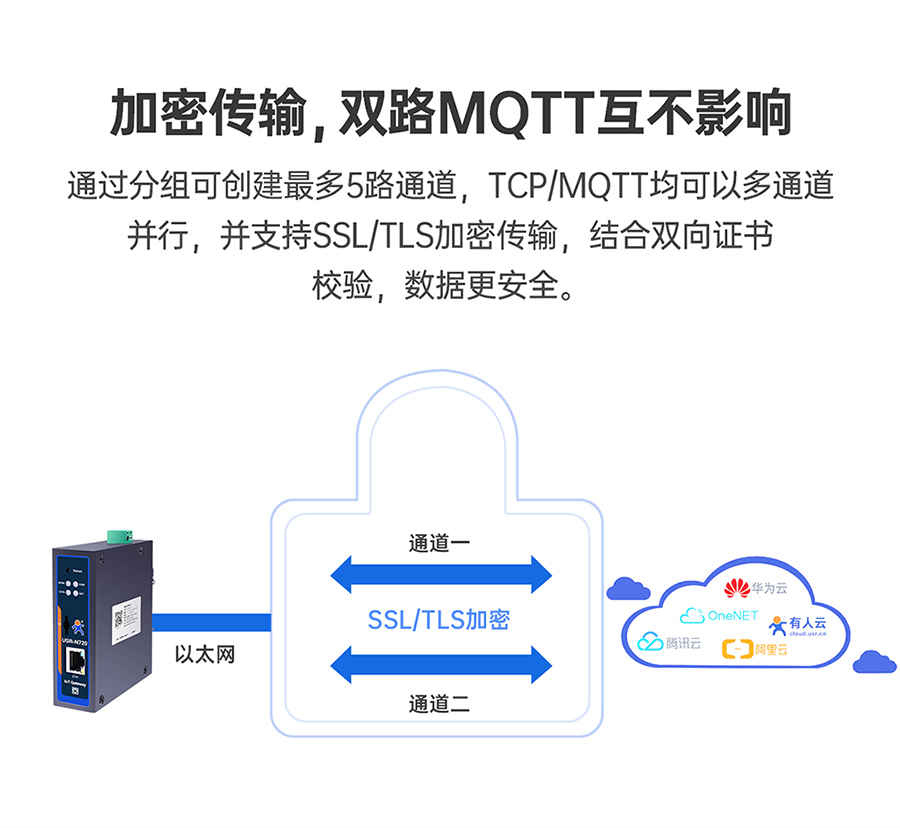 5路,2路TCP连接+2路MQTT+1路有人云,支持SSL/TLS加密