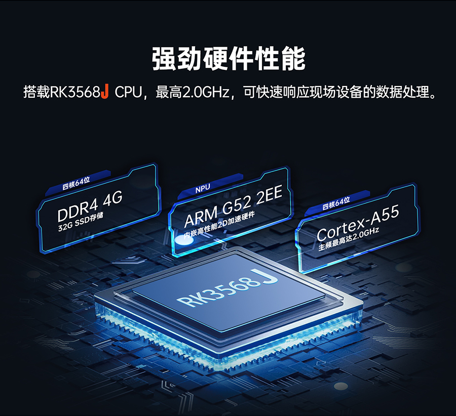 瑞芯微RK3568J,四核Cortex-A55,主频2.0GHz,1TOPS算力