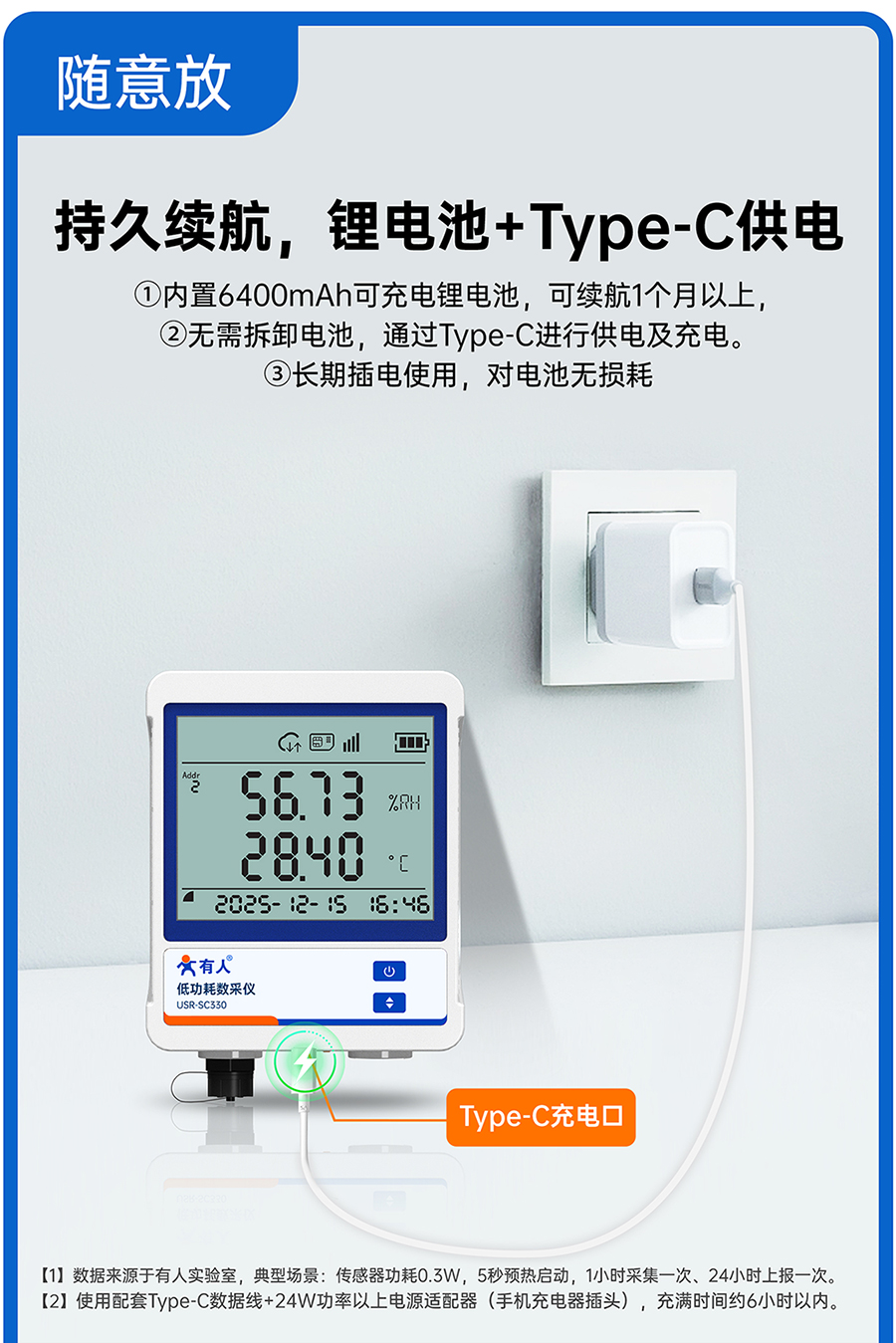 Type-C接口,配套电源适配器,可长时间接入使用