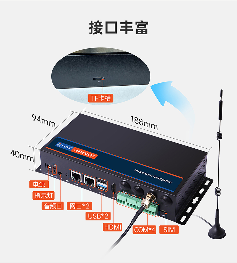 1*电源状态LED(红色),1*系统LED(绿色,默认闪烁)