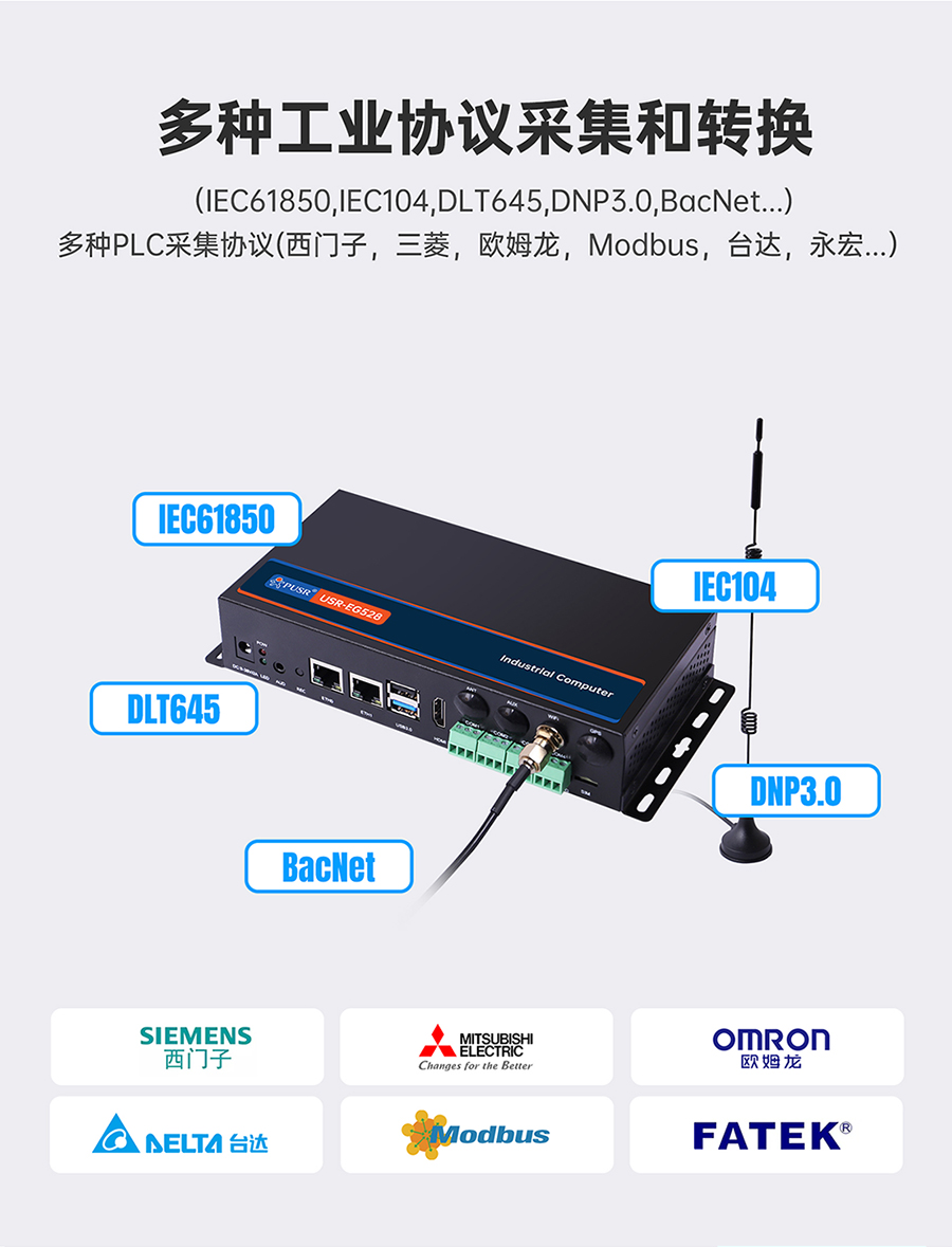 支持Modbus,OPC UA,JSON,IEC104,IEC61850,Bacnet等