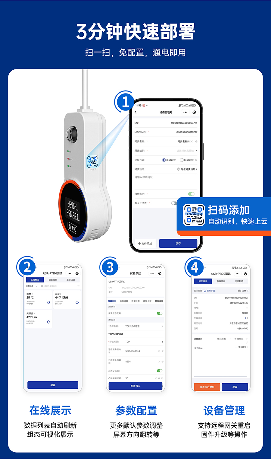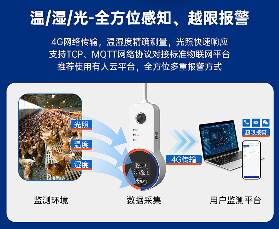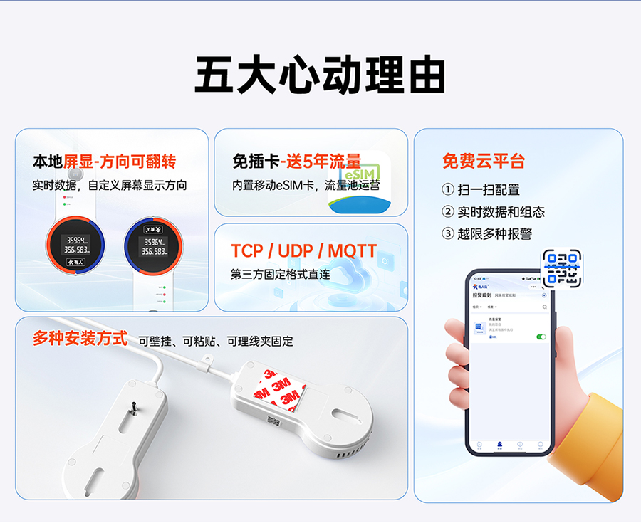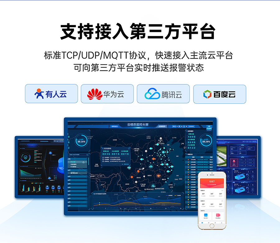 支持有人云上报、支持TCP、UDP、MQTT通道JSON格式及固定格式上报