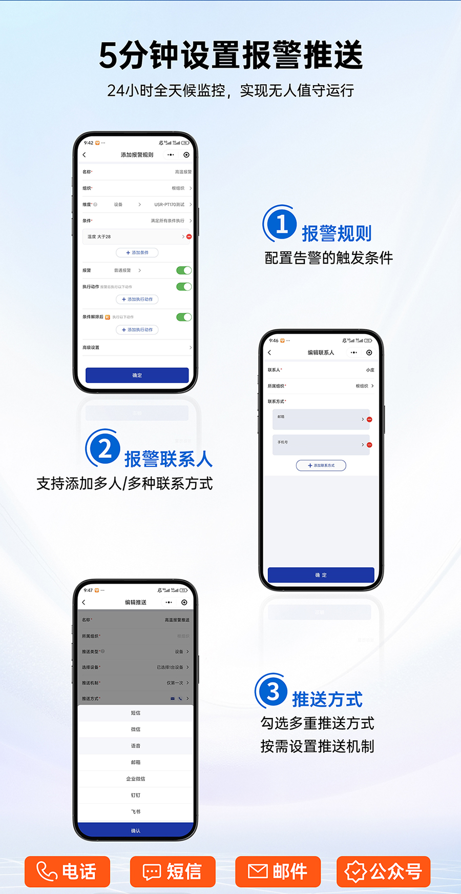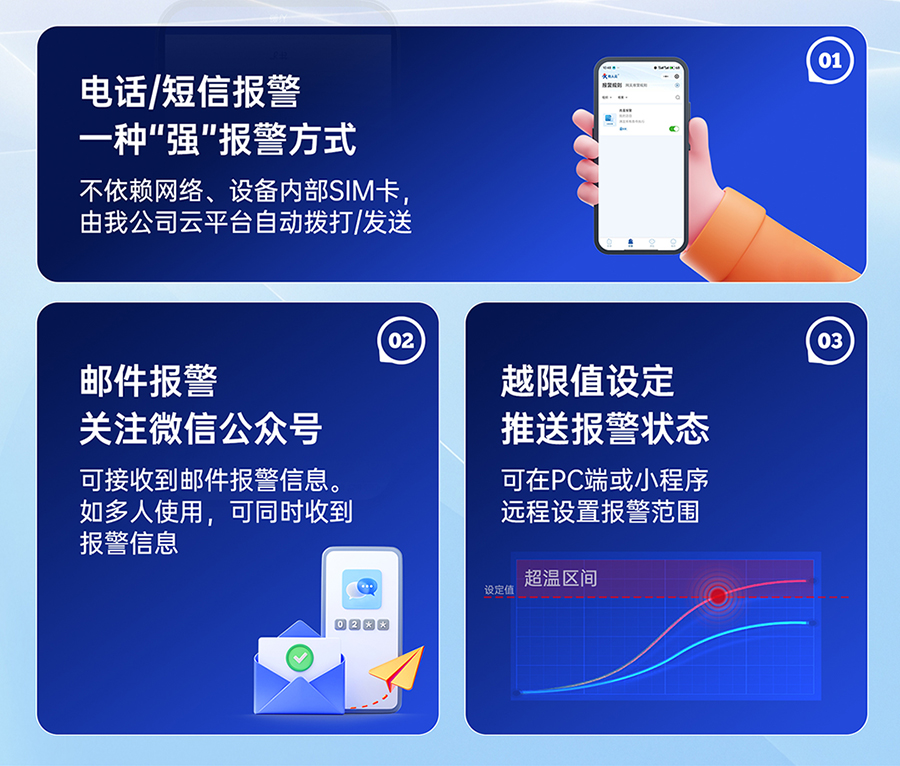 支持数据偏移校准、支持数据上、下限越限报警