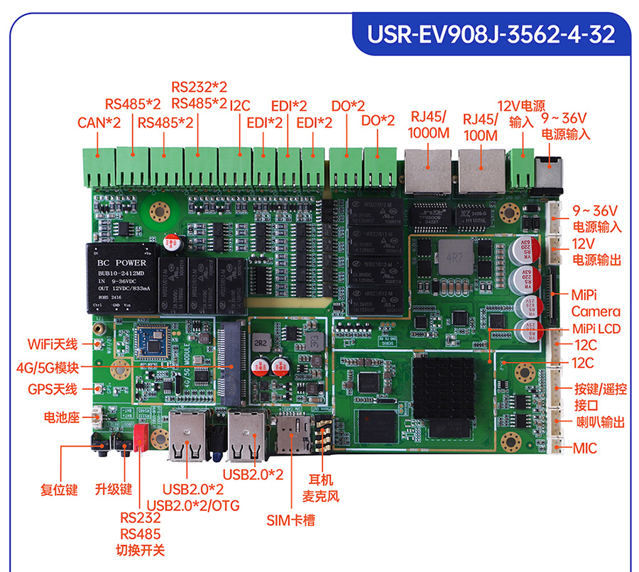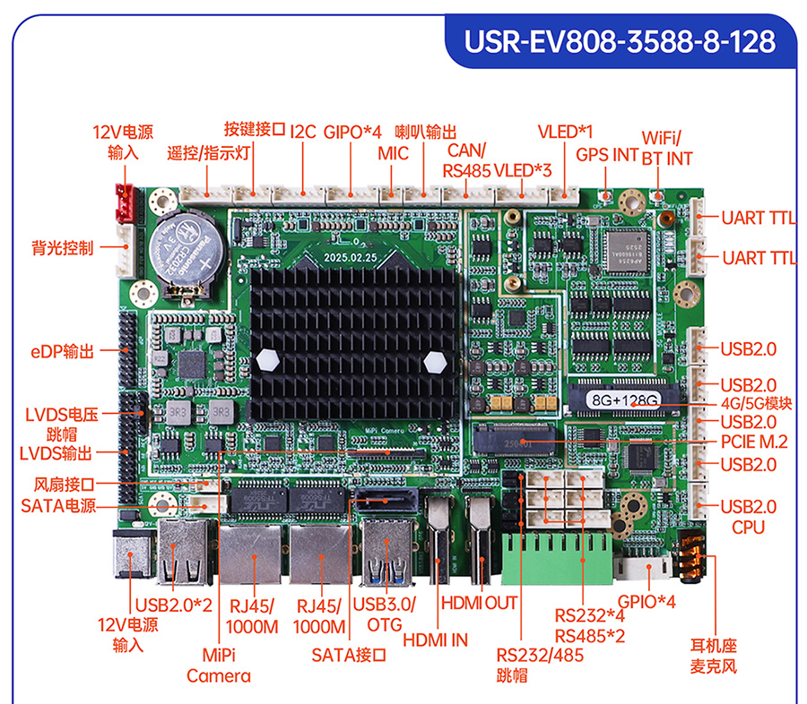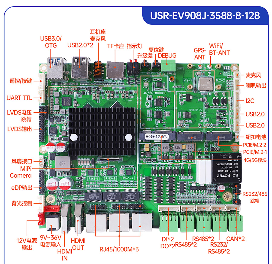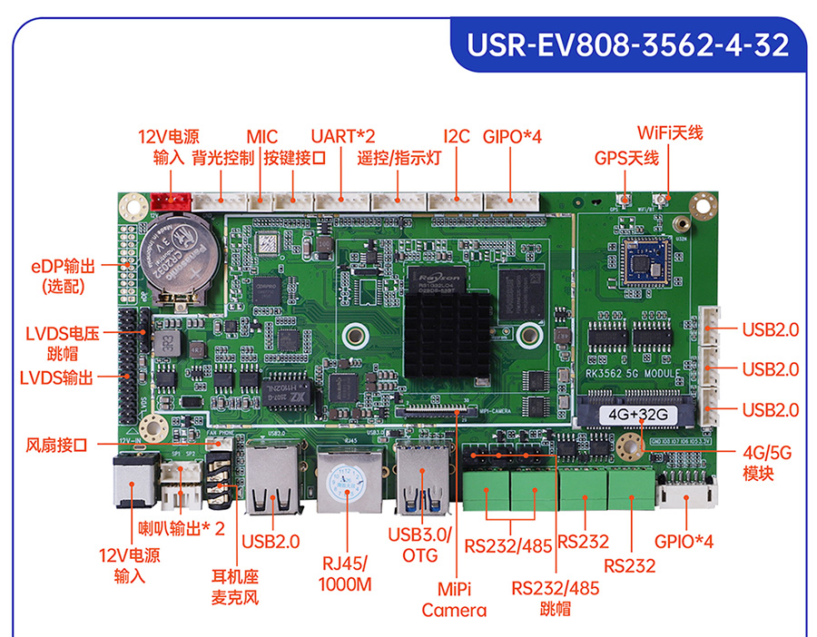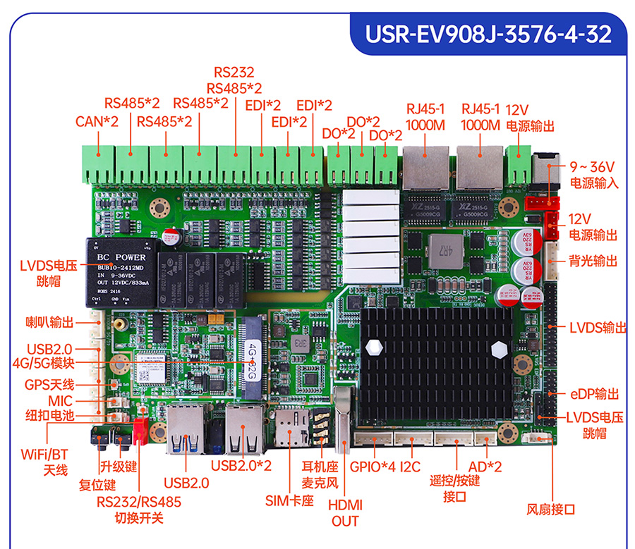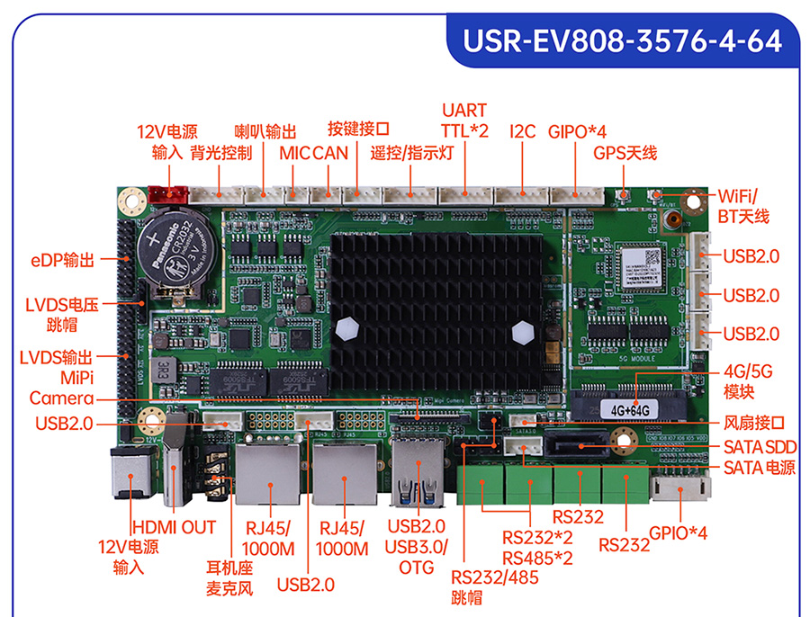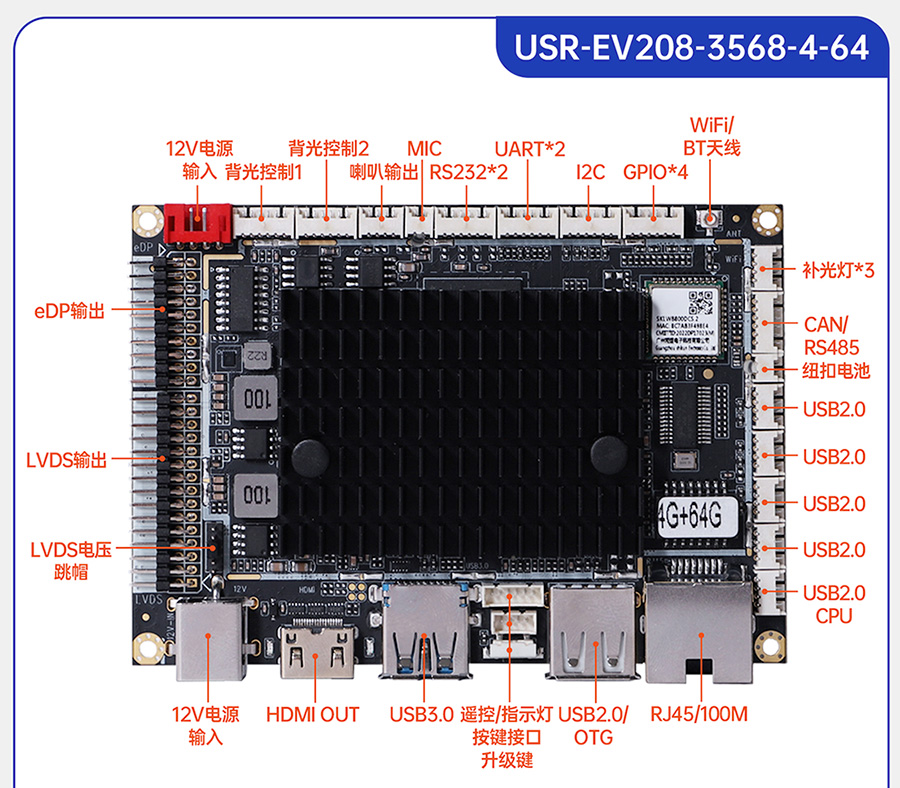 USR-EV系列工控主板基于瑞芯微RK平台打造,提供多款CPU配置可选,灵活适配。支持多种内存与存储组合,涵盖eMMC、LPDDR4等多种规格,兼顾性能与成本。EV系列提供多样化尺寸及丰富接口设计,包括标准网口、USB等通用外设接口,便于快速集成与部署。出厂预装系统可选Ubuntu、Android或Debian,满足各类行业需求,适用于工业控制、智能终端、边缘计算等领域。